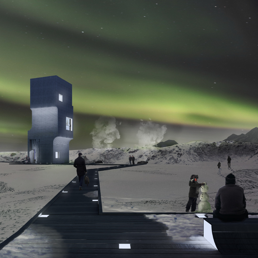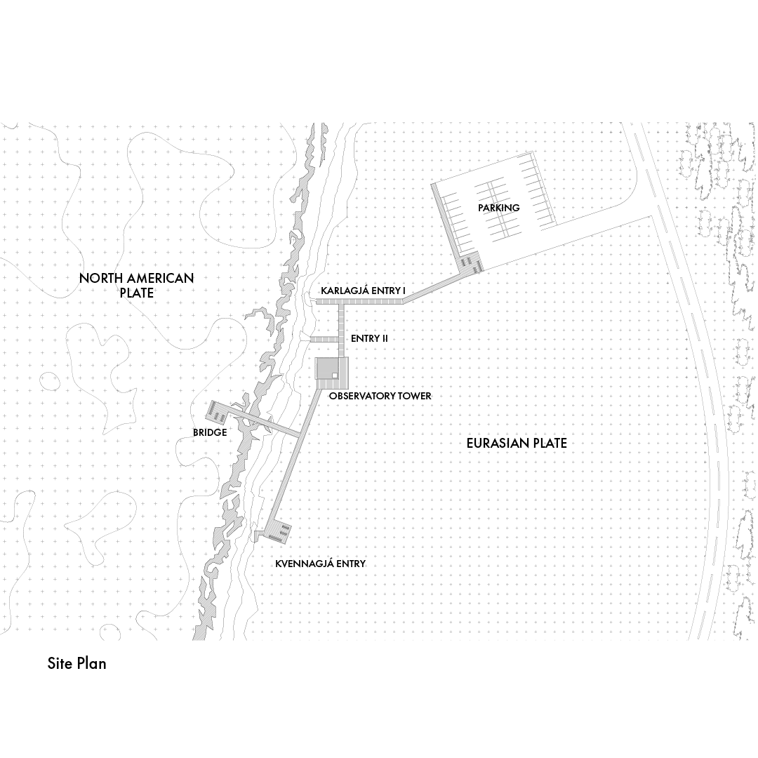 Iceland에 제안된 Fissured Stack 전망대는 거시적인 관점에서 대상지의 다음과 같은 지질학적 특성을 표현하는 설계안입니다.