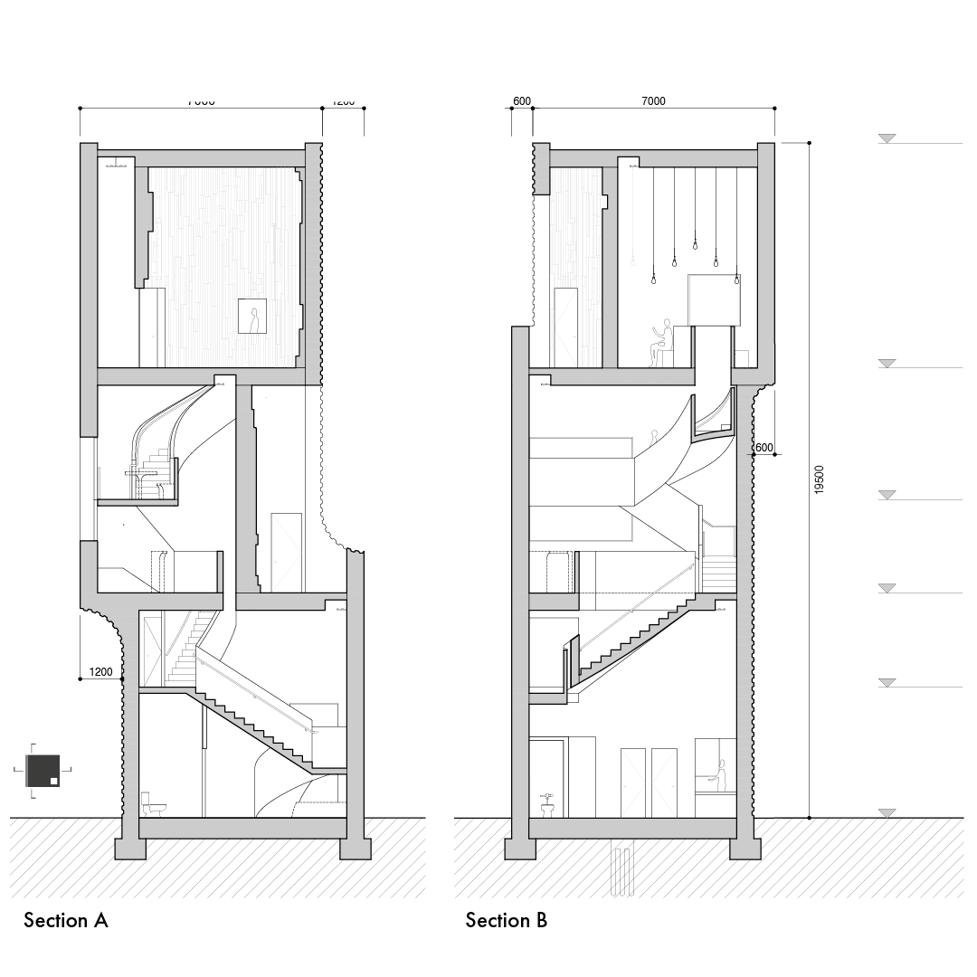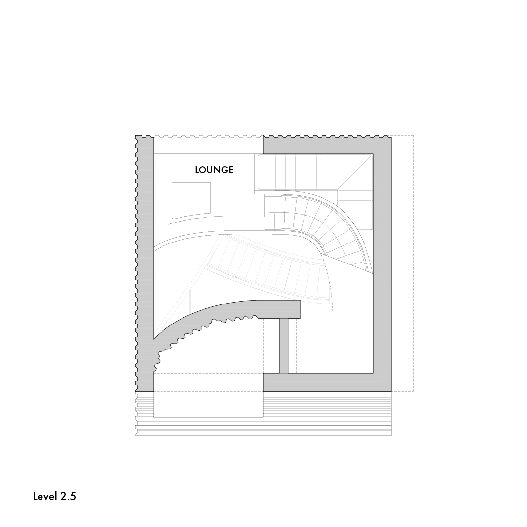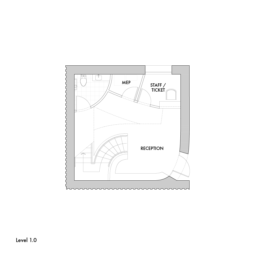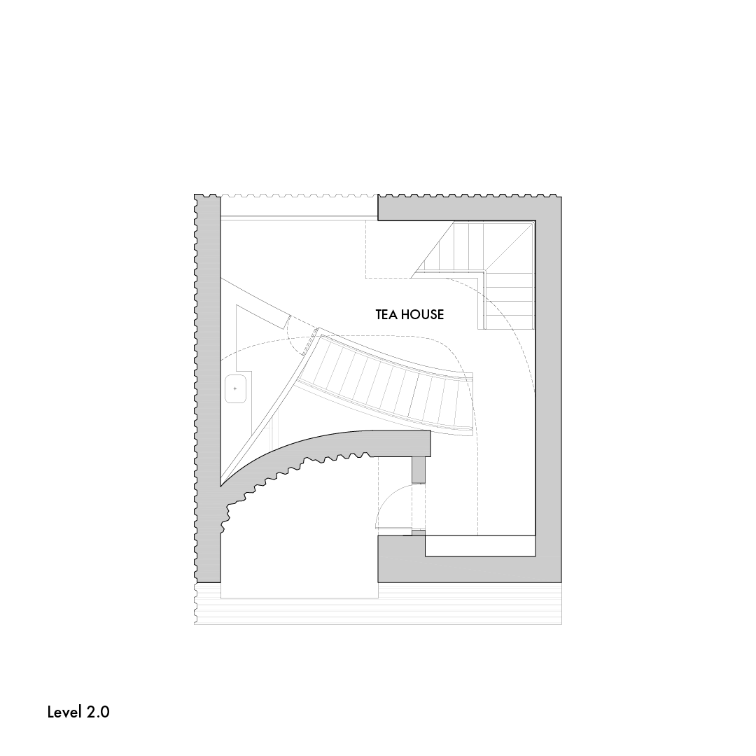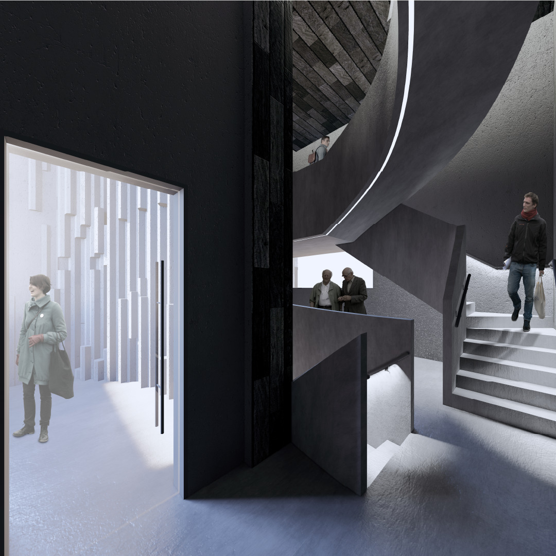 외무마감은 여러 레이어의 메탈데크의 콜라주를 거푸집으로 활용해 아이슬란드 현무암 기둥의 질감을 살린 거푸집의 물성을 활용한 곡선의 콘크리트 벽이 건축의 Geomtry를 구성합니다. 실내에 들어서면 연속적인 계단을 따라 갈라진 석판을 통과하여 주 전망대와 찻집 라운지가 있는 최상층에 도달할 수 있습니다. 그을린 목재 마감으로 마감된 내부 분위기는 여행을 풍요롭게 하는 동굴에서의 경험을 표현하며 방문객에게 시각적인 즐거움과 후각적인 즐거움을 동시에 선사합니다.