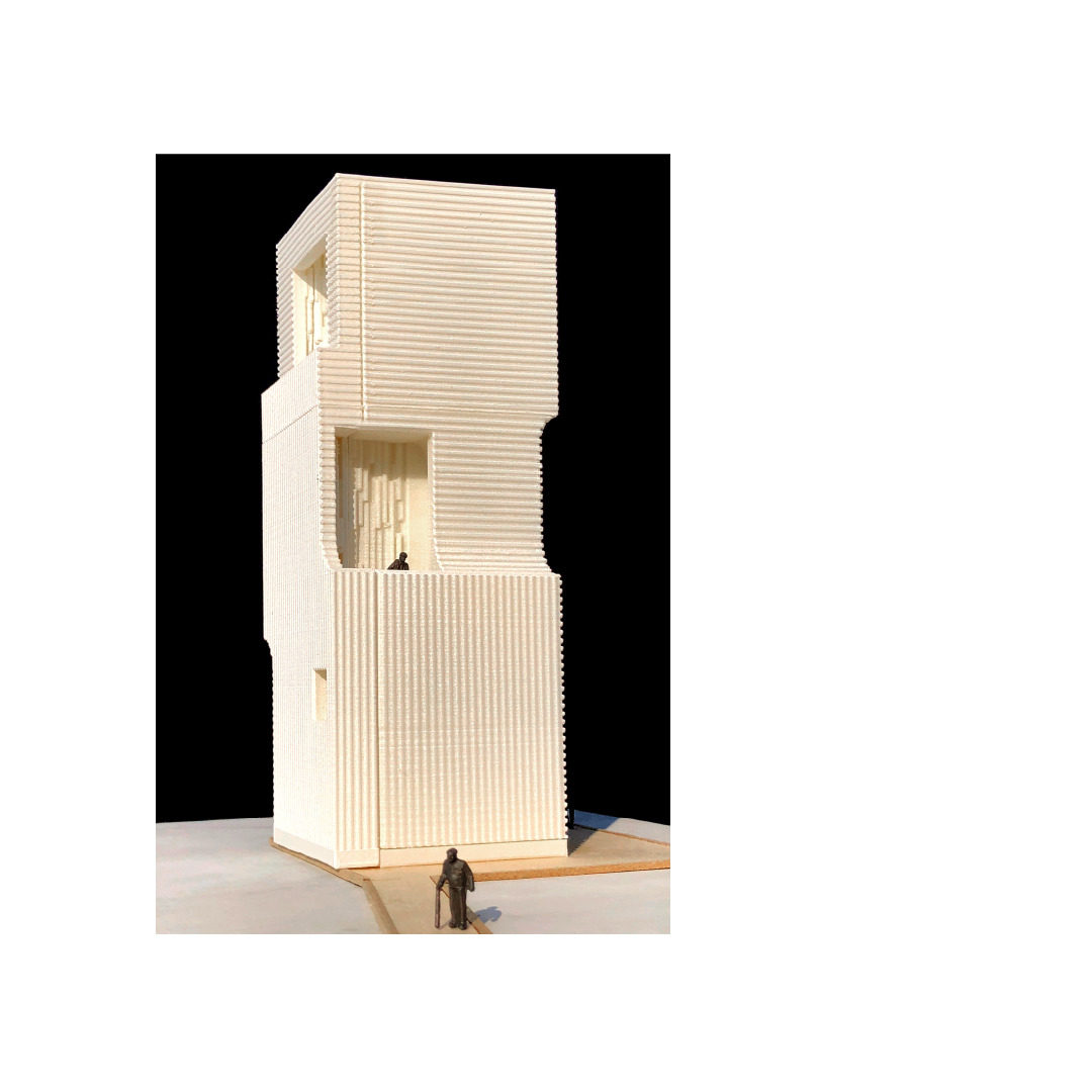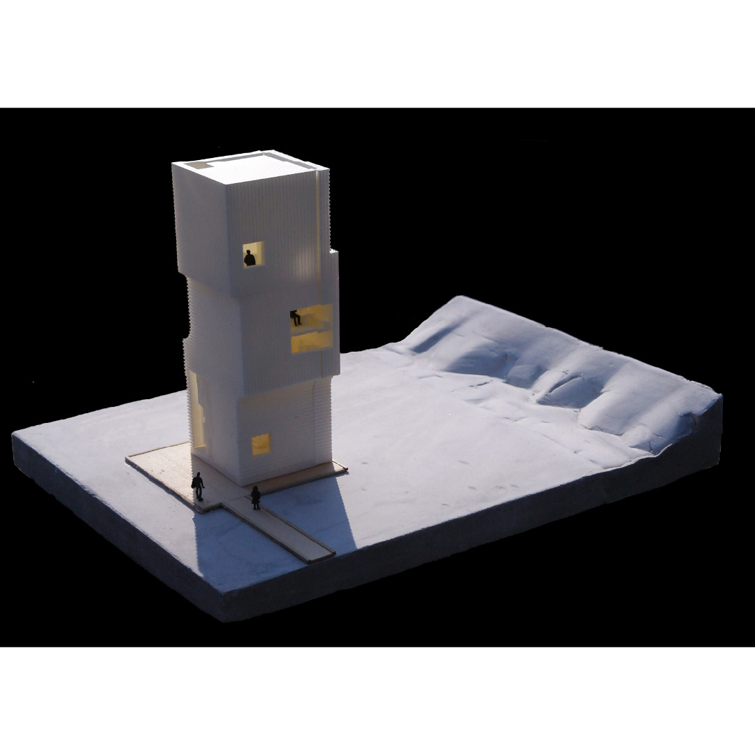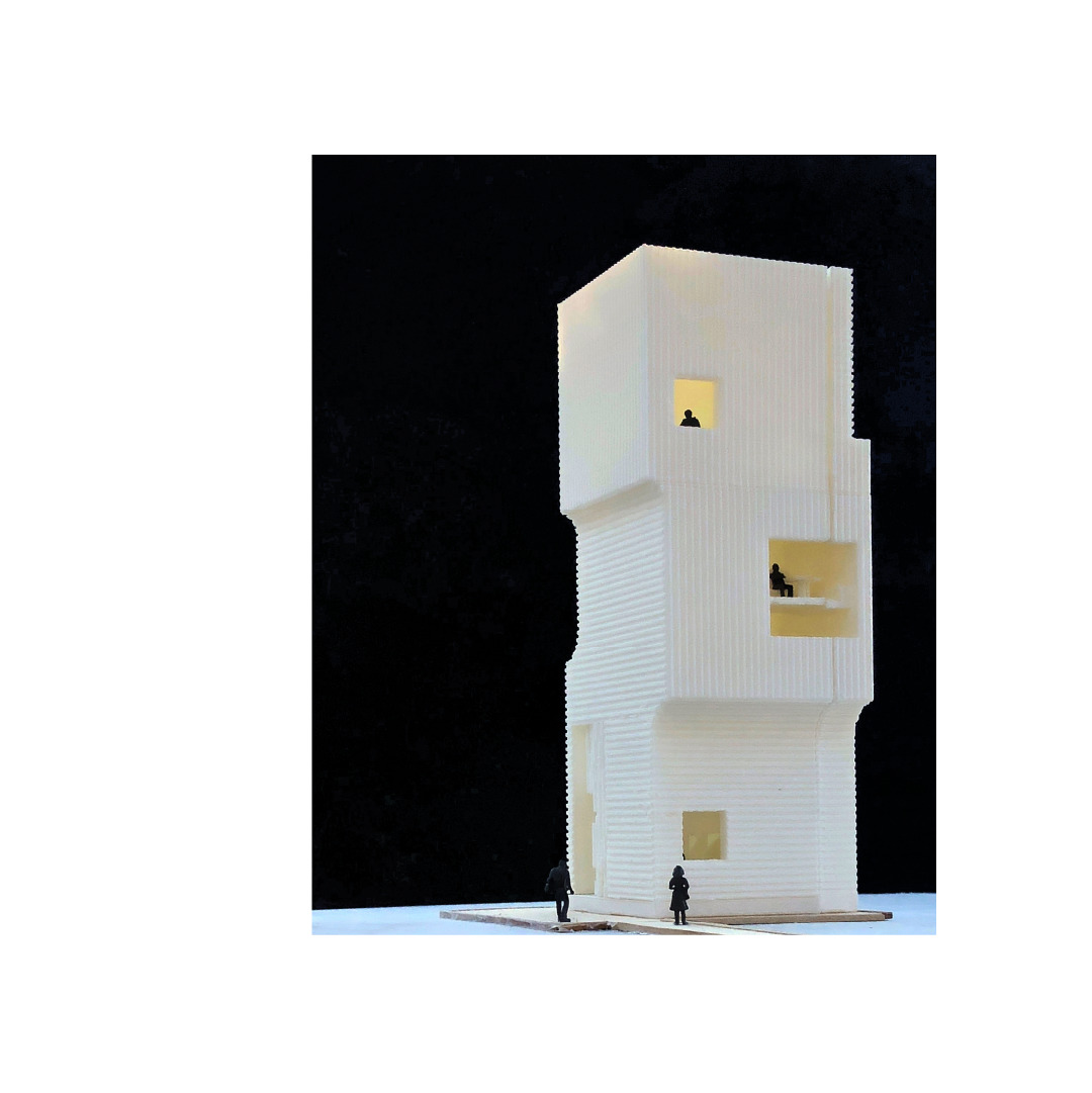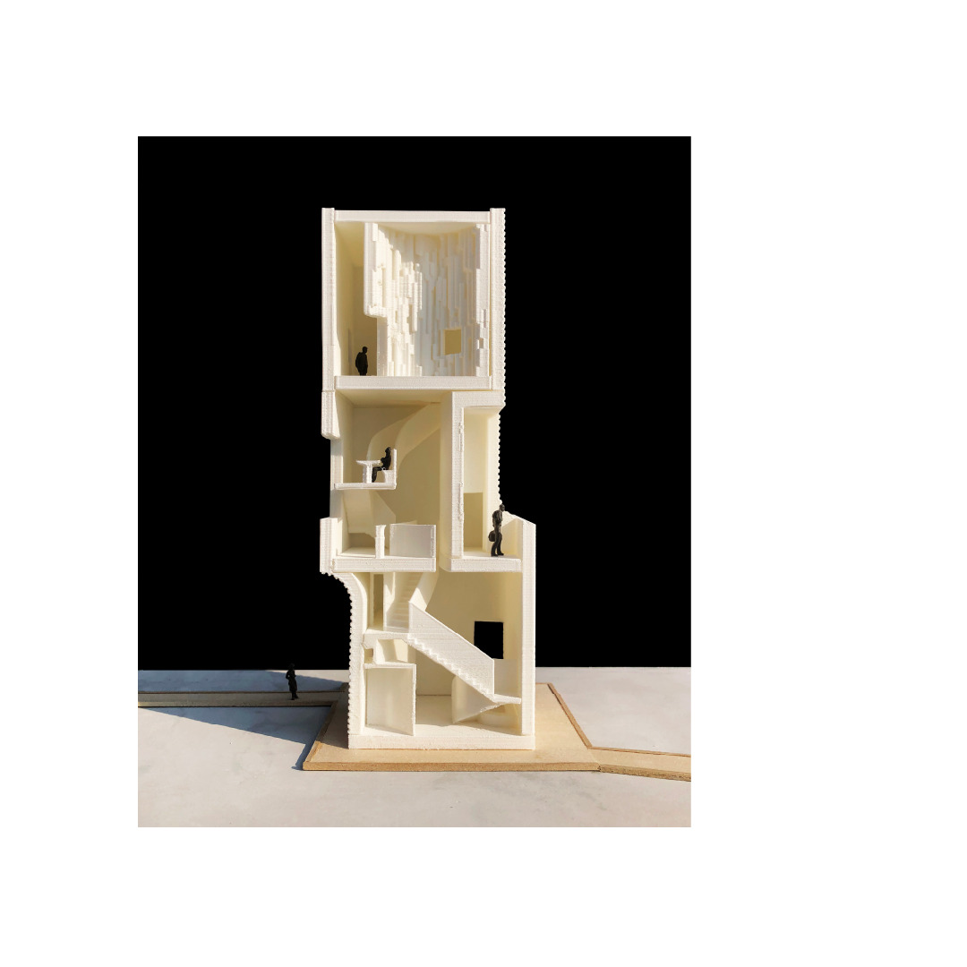바다에서 볼 수 있는 Sea Stack이 원거리에서도 우리에게 강한 인상을 주는 것처럼, Fissured Stack은 수직적인 존재감을 표현하여 방문객들이 멀리서도 타워를 쉽게 알아볼 수 있도록 합니다.